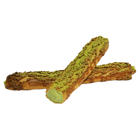 Take a bite of the fluffy pistachio donut and you'll find it filled with rich, nutty pistachio cream. A sweet, handmade pistachio donut.